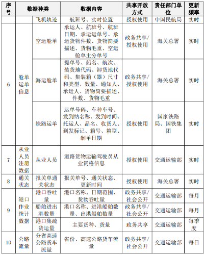 建立国家物流公共数据共享开放清单,根据行业管理和政务服务需要,明确物流公共数据共享范围,加强企业资质、从业人员、车船注册、通关物流等数据归集共享。对已在国家有关部门实现集中管理的物流公共数据,加大“总对总”共享力度,健全信息更新维护机制,提升物流公共数据共享质效。加大基础设施、运力、价格等物流公共数据开放力度。